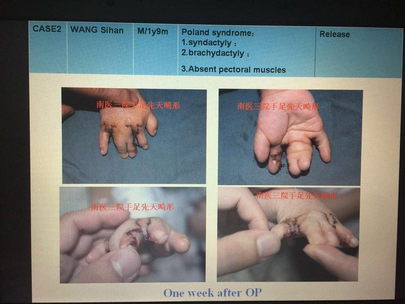 - 至於序列畸形包括許多疾病, 無法一概而論, 通常屬於產前發育障礙, 極少會再發, 但有少數疾病被認為與遺傳有關.. 蘭氏症候群(poland's syndrome) 乃因波蘭先生的發現而命名為「波 蘭氏症候群」。此種症候群並不常見, 所以發生率不易估算。在巴西人的調查 中,光是手部畸形的波蘭氏症候群患者 機會便在萬分之一。此種症候群的發生 原因並不十分清楚,基本上與遺傳或基 至於序列畸形包括許多疾病, 無法一概而論, 通常屬於產前發育障礙, 極少會再發, 但有少數疾病被認為與遺傳有關. 波蘭氏症候群 (poland's syndrome) 一八四一年阿富雷德.波蘭以 胸大肌缺陷 之標題發表了一篇文章, 文中他繪圖說明了在一次屍醴解剖之發現: 至於序列畸形包括許多疾病, 無法一概而論, 通常屬於產前發育障礙, 極少會再發, 但有少數疾病被認為與遺傳有關. 含蓋整個胸骨及肋骨部分之胸大 肌缺乏, 而胸小肌完全沒有, 而整個前鋸肌大部分缺乏,左手之所有指頭的中 指骨都沒有, 而指頭間的蹼膜向前延伸至第三指間關節, 整個左手比右手來 得短, 除此之外其他並無任何異常。.
